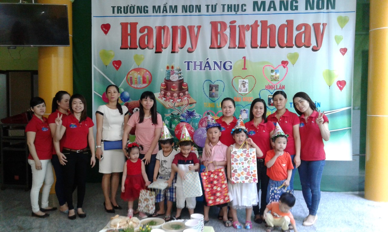 Thứ năm ngày 21/01/2016 Trường MNTT Măng Non phối hợp cùng Phụ huynh tổ chức sinh nhật cho các Bé trong tháng 01: XUÂN LỘC,HOÀI AN,GIA AN,TÙNG LÂM,THIỆN NHÂN, MINH LÂM, BẢO NGỌC.