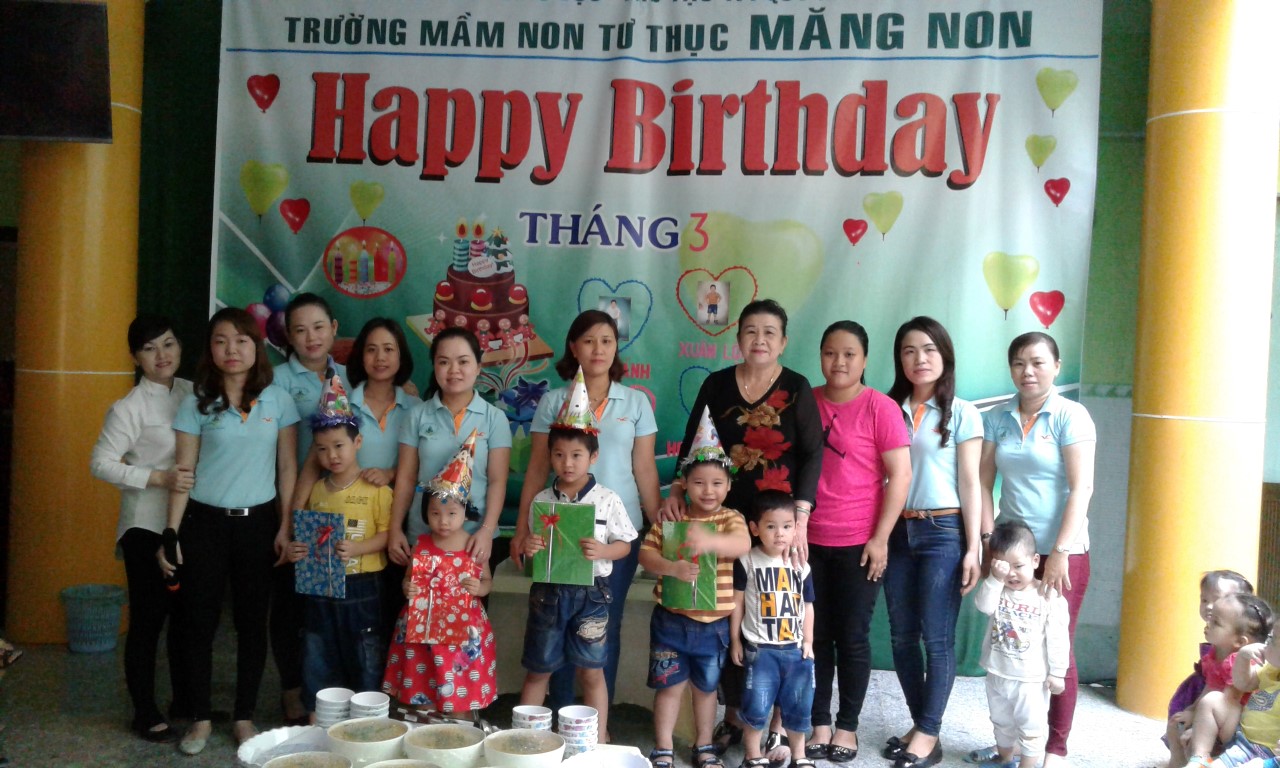 Thứ năm ngày 24/03/2016 Trường MNTT Măng Non phối hợp cùng Phụ Huynh tổ chức sinh nhật cho các Bé sinh trong tháng 3: HOÀNG ĐĂNG, BÁ KHÁNH, XUÂN LỘC, NGỌC HÂN. Xem chi tiết trong mục Albums Ảnh.